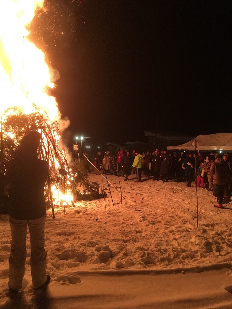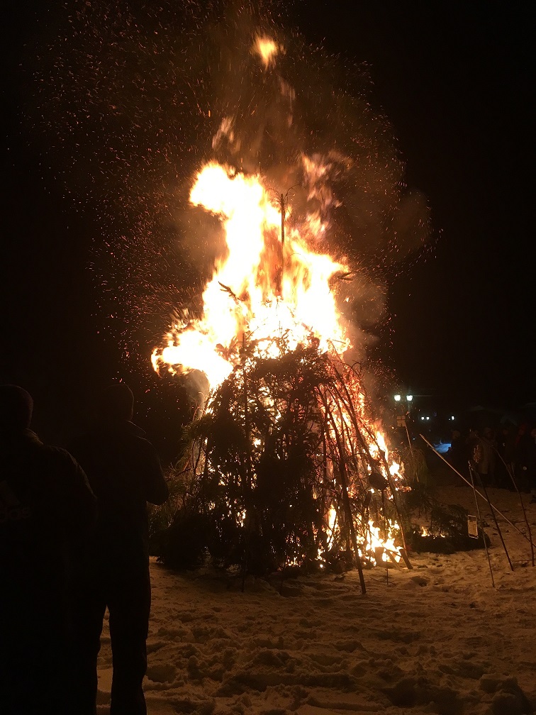 この歳の神の火にあたると、病気にならないと言われてます。また、この火で餅やスルメを焼いたものを家に持ち帰り、家族で分けて食べる。そうするとその年は家内安全、無病息災で過ごすことができると伝えられています。