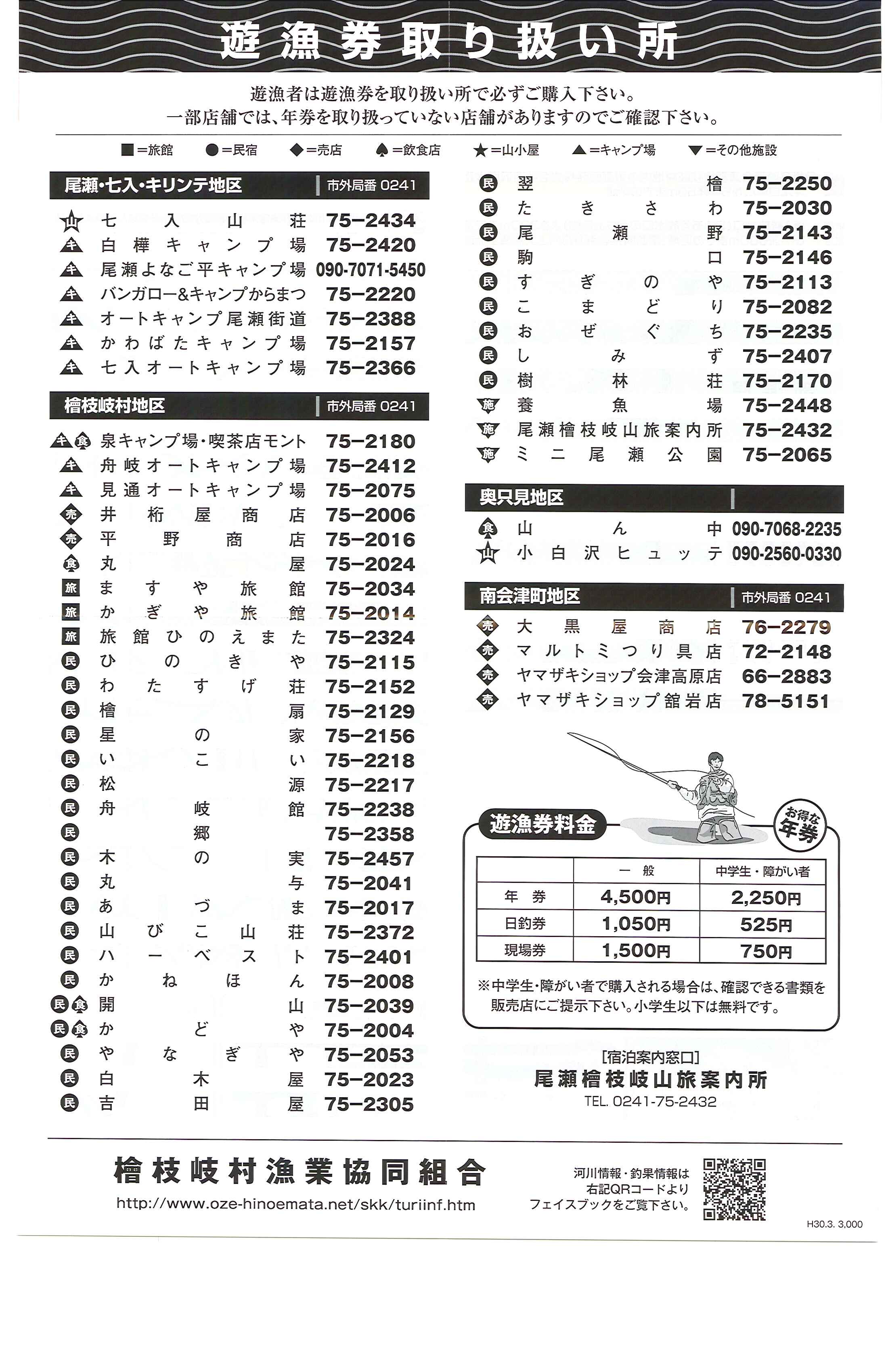 また、遊漁件は、村内旅館、民宿、売店、山旅案内所等で販売しておりますので、お買求めのうえ釣りをお楽しみください。
