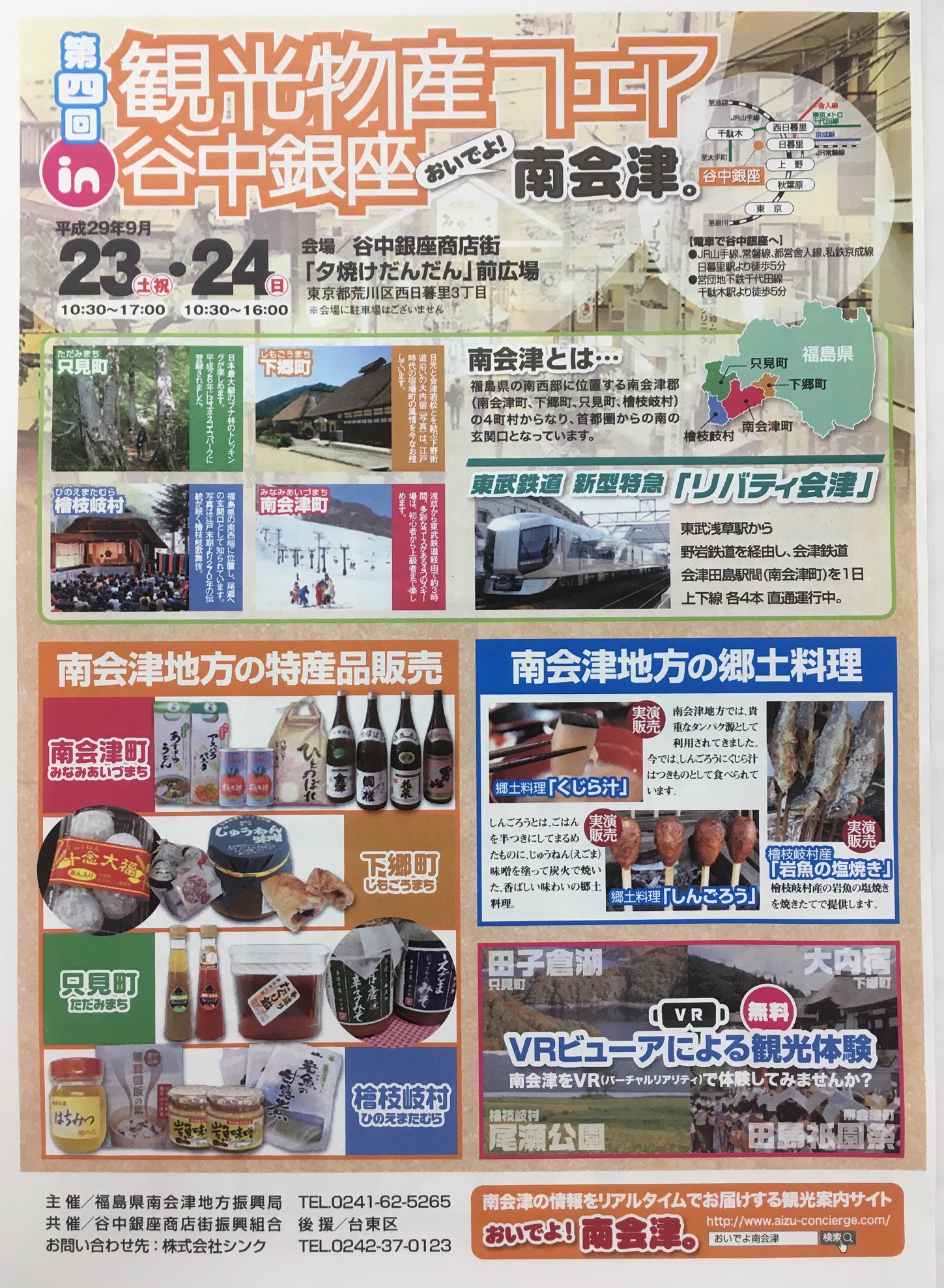南会津商工会広域連携協議会管内からは、企業組合とんぼのめ(南会津町)、(資)金久小林商店(南会津町)、 笹屋皆川製菓(下郷町)、(株)金子牧場(下郷町)が出展します。それぞれ自慢の逸品を販売いたしますので是非お越しください!!