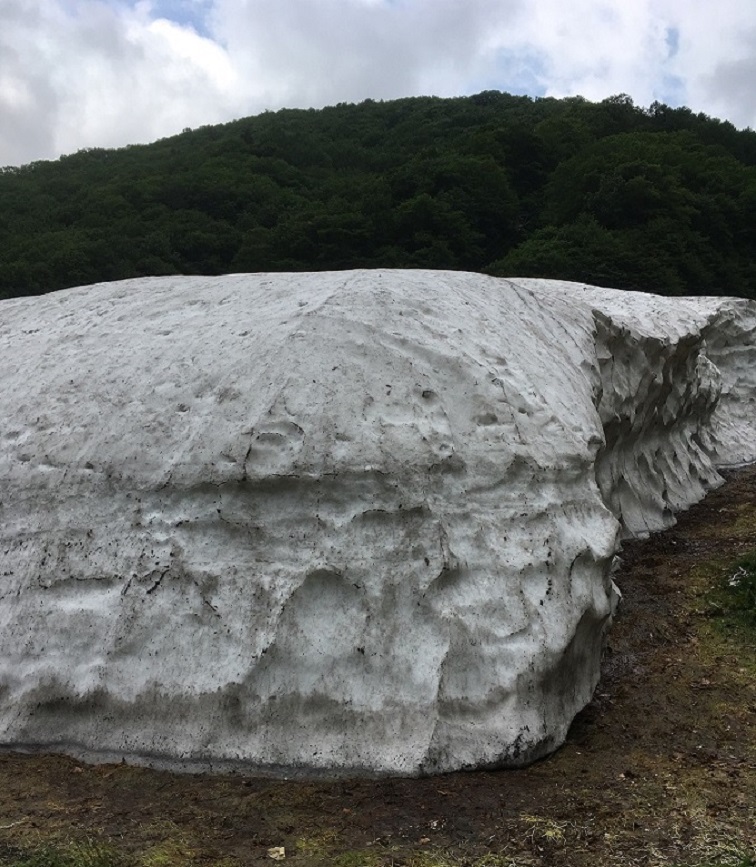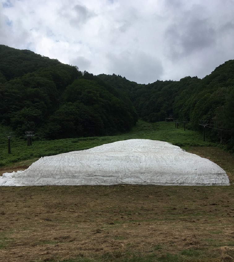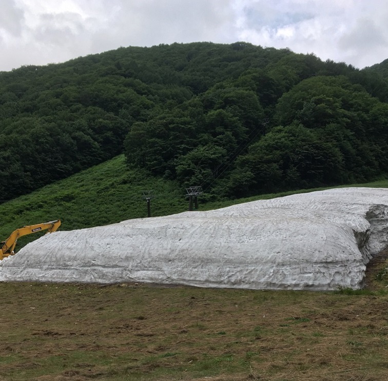 会場となる、尾瀬檜枝岐温泉スキー場では、スキー場クローズ後雪を特殊なシートで保存しておきます