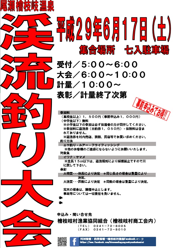 [PR] ×[PR]上記の広告は3ヶ月以上新規記事投稿のないブログに表示されています。新しい記事を書く事で広告が消えます。 尾瀬檜枝岐温泉渓流釣り大会 6月17日(土)開催!! 参加者募集中!! 檜枝岐村漁業協同組合主催の渓流釣り大会を6月17日(土) に開催します 事前申し込みをされると参加費が500円引きの1,000円になります(当日、現地でのお支払いとなります)。遊漁券は、各自ご用意くだ さい(村内旅館、民宿、観光案内所等でお買いお求めいただけます)。 腕自慢の皆様方の参加お待ちしてます~ 事前申込み・問合せ先 檜枝岐村漁業協同組合(檜枝岐村商工会内にあります) 0241-72-8005 [5回]PR 南会津町乾杯条例特別企画開催について みなさんこんにちは~ 今月、6月21日(水)18:00~会津田島駅前広場にて、 南会津の地酒と食材のマリアージュを開催致します~ 南会津町乾杯条例の説明や美味しい日本酒の飲み方について説明もあります アスパラの一夜漬けなどのおつまみや大抽選会もあるよ~ 詳しい内容につきましては下記チラシをご覧下さいませ~ 皆さん~待ってるよ~ [0回] 尾瀬情報6月3日現在(゚ー゚☆ その② 水芭蕉と不思議な虹 こんにちは 尾瀬情報②です 今年は、雪が多かったため、水芭蕉の開花も若干遅かったですね 尾瀬沼と燧ケ岳↓ そしてこの虹 「環水平アーク(かんすいへいアーク)」と呼ばれている現象 で、天気が下り坂になるサインなど様々ないわれがあるようで すね。 今の時期には時々見られるようです ※写真提供 檜枝岐村役場観光課 [0回] 尾瀬情報6月3日現在(゚ー゚☆ その① 登山道状況 こんにちは 6月3日現在の尾瀬の状況をお知らせします。 沼山峠登山口から尾瀬沼に向かう登山道には雪が残っております 登山道は足跡がついておりますが、踏み固められているため大変 滑りやすく、木道が見えてきている箇所も、雪が残っております ので、転倒しやすくなっております 尾瀬に入る際には十分な装備をしてきてくださいね。 ※写真提供 檜枝岐村役場観光課 [0回] JAZZコンサートやるよ~!(^^)! 地酒飲み比べJAZZコンサート開催について なななんと~初まちなか楽座にて今週JAZZコンサートが開催致します~ なかなか、JAZZなんて聞けないですよね~ ご近所お誘い合わせの上お越し下さいませ~おつまみ持ち込み自由です~ 日 時 2017年6月10日(土)午後6時~ 場 所 まちなか楽座(62-7557) ◎東京学芸大学軽音楽JAZZ研究会の方がたの演奏になります~ お楽しみに~ [0回]